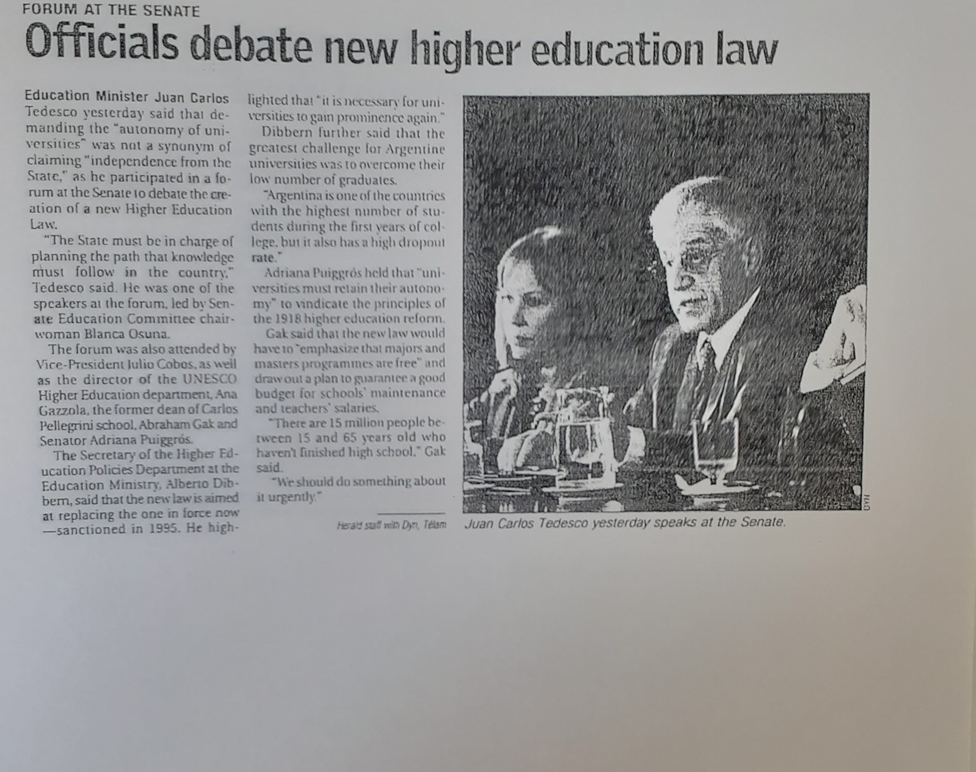 Herald Staff (27 de junio de 2008). Officials debates new higher education law. Buenos Aires Herald.