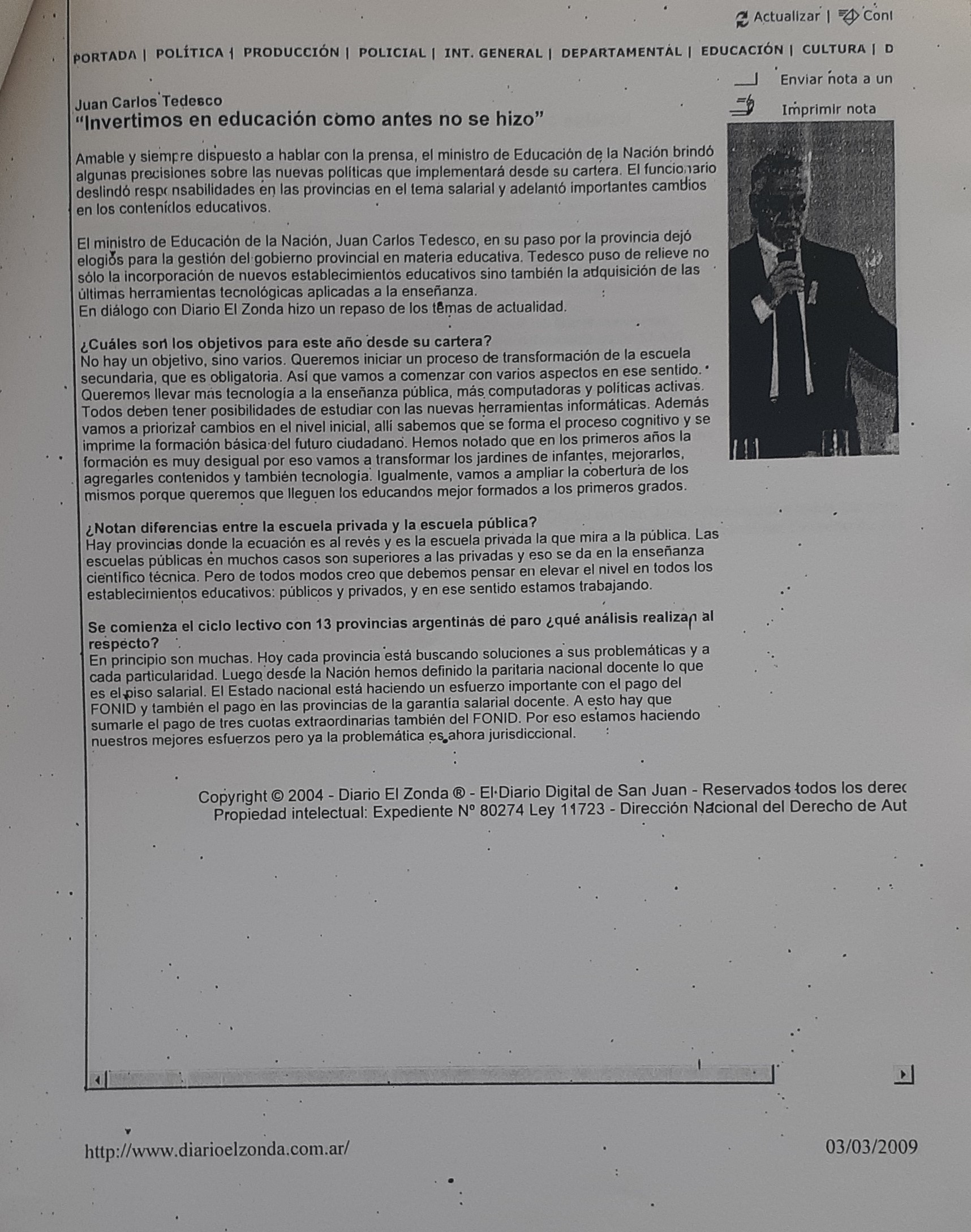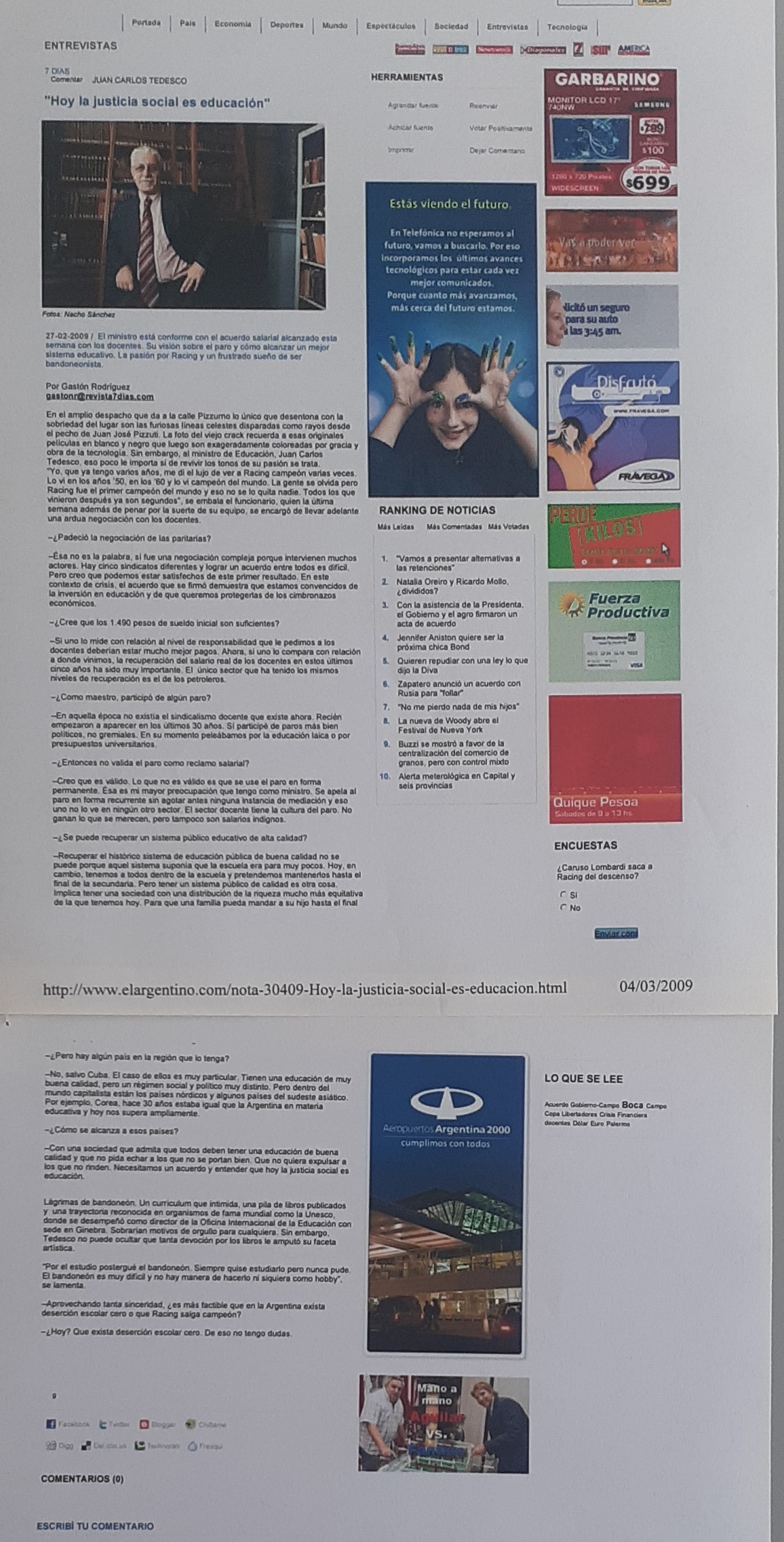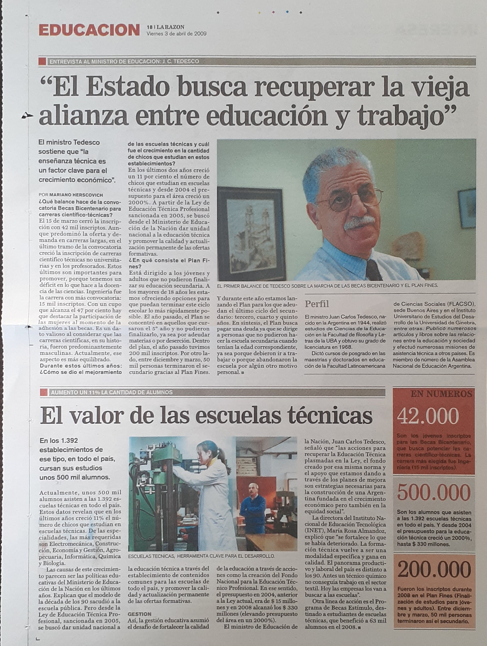 Bertino. R. (31 de agosto de 2009). Entrevista a Juan Carlos Tedesco: "Hay que invertir en tecnología". La Voz.com.ar.