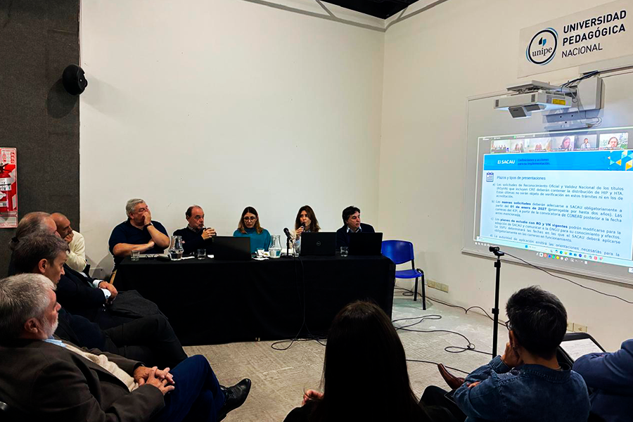 El 4 de junio por la mañana se desarrolló en la Universidad Pedagógica Nacional (UNIPE) el Curso "El Sistema Argentino de Créditos Académicos SACAU. Definiciones y acciones para su implementación" . Contó con la participación presencial de más de 200 asistentes, entre ellos Rectores, Vicerrectores y Secretarios Académicos de las Universidades Nacionales de todo el país.