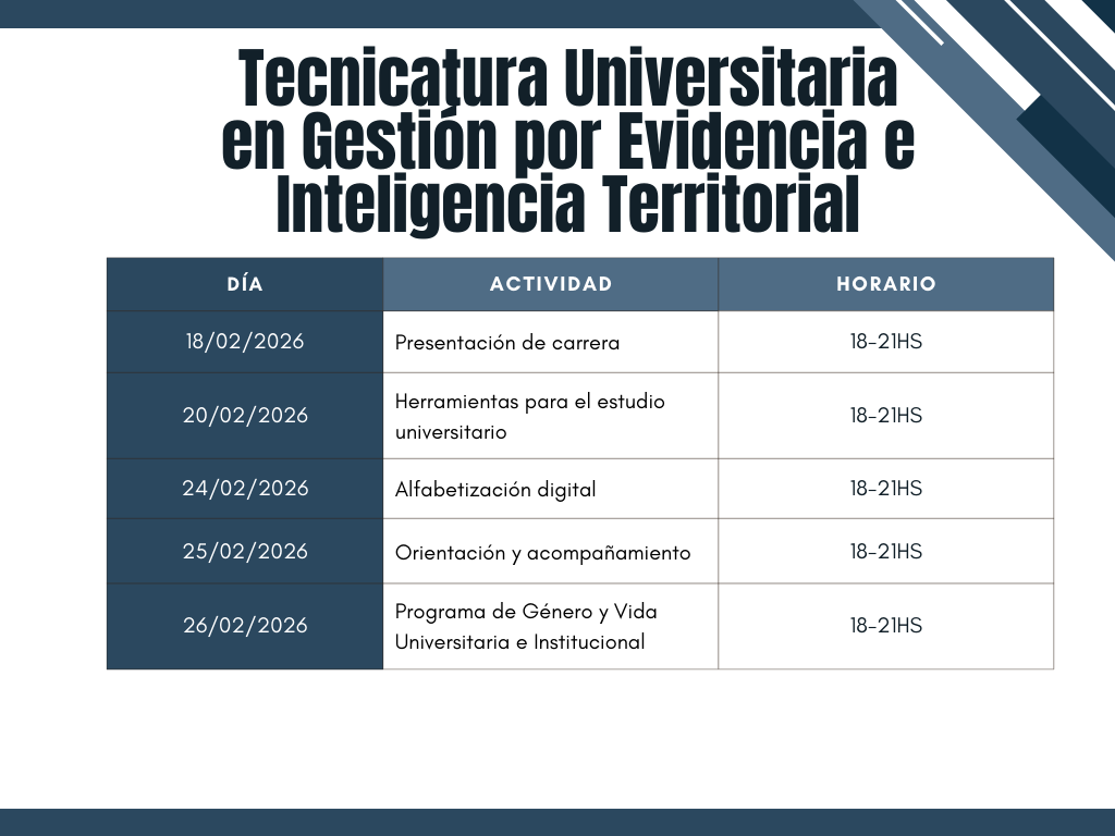 Tecnicatura Universitaria en Gestión por Evidencia e Inteligencia Territorial