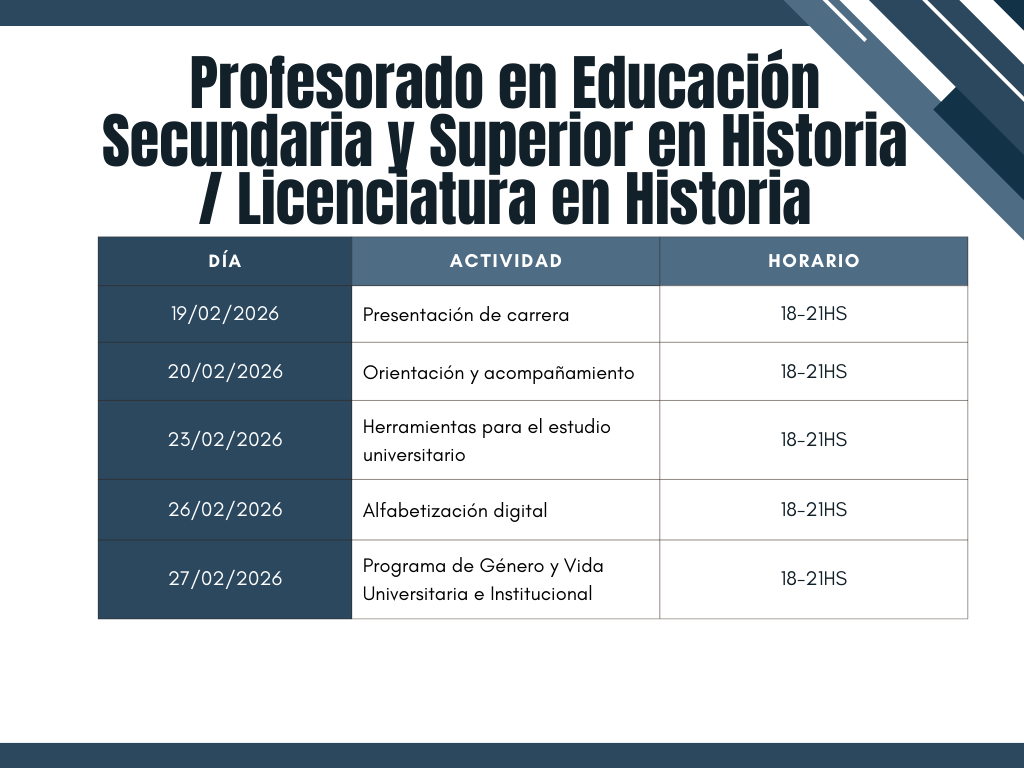Profesorado de Educación Secundaria y Superior en Historia / Licenciatura en Historia